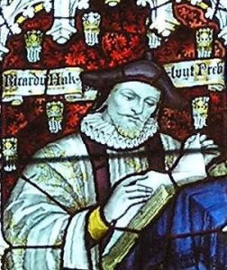 Hakluyt depicted in stained glass in the west window of the south transept of Bristol Cathedral. (photo to right)