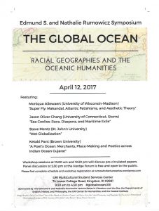 The Global Ocean: Racial Geographies and the Oceanic Humanities, a panel discussion of the presenters’ current work and their contributions to the oceanic humanities. Featuring: