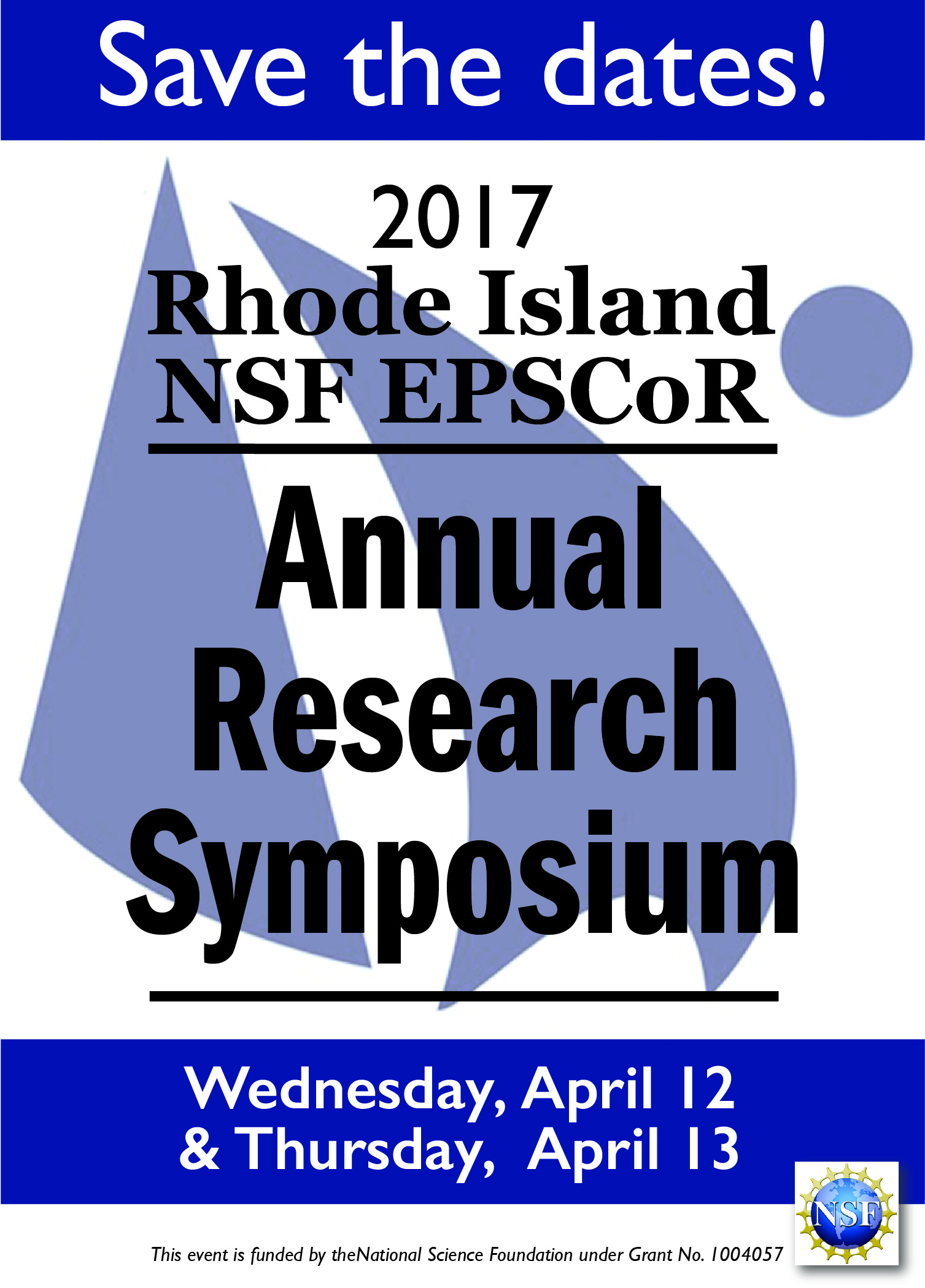 We are excited to announce the next annual RI EPSCoR symposium in April 2017, to be held either Wednesday, April 12, or Thursday, April 13. Theone-day event will include facility tours and demonstrations, student and faculty poster sessions, and invited speakers.